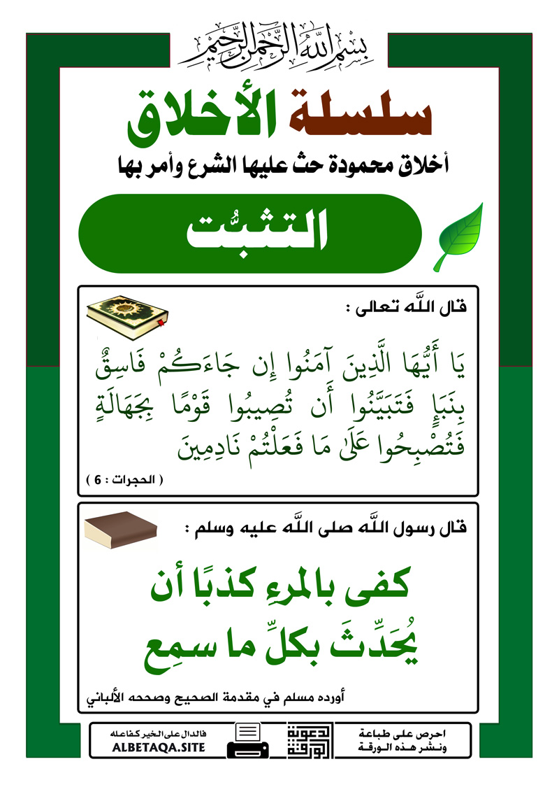 سلسلة الأخلاق التثبت ودعوا الي سبيل ربك The Invitation To The Way Of Thy Lord
