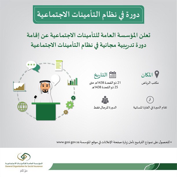 التأمينات الاجتماعية En Twitter مكتب المؤسسة بـ الرياض يقيم دورة مجانية في شرح نظام التأمينات الاجتماعية للحصول على نموذج الترشيح Https T Co Hdujdlkj7u Https T Co W3iypsj2oa