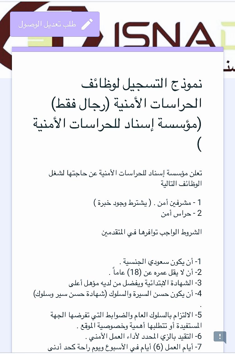 دليل الأحساء On Twitter وظائف امنية في مؤسسة إسناد للحراسات الأمنية بـ المنطقة الشرقية 1 مشرفين أمن 2 حراس أمن Https T Co Howzt00e7m Https T Co Xxknojiu7l