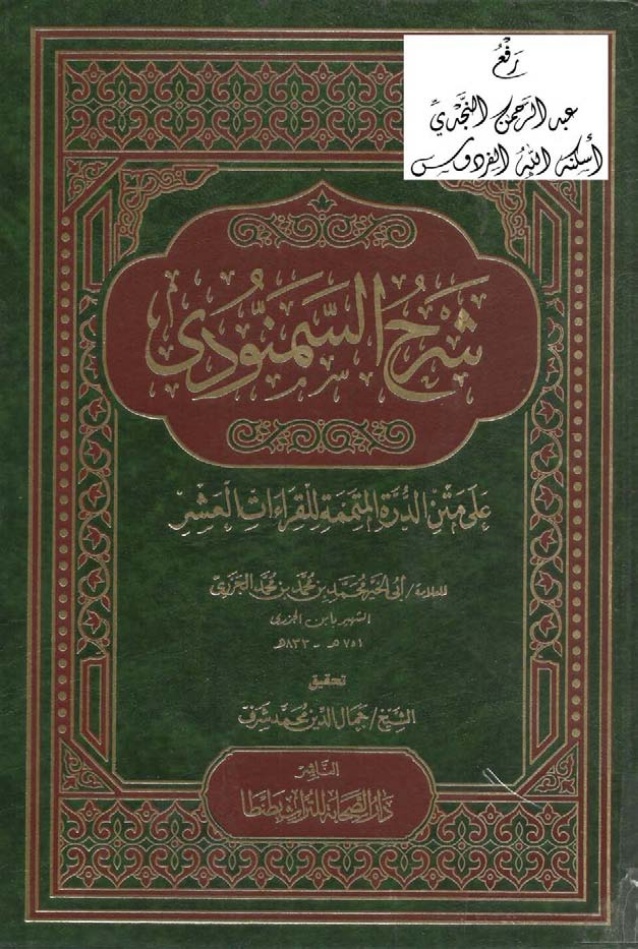 شرح السمنودي على متن الدرة المتممة للقراءات العشر للعلامة ابن الجزري رحمه الله تعالى تحقيق جمال الدين محمد شرف طبعة 1426هج 2006 م دار الصحابة للتراث بطنطا مصر كل الكتب