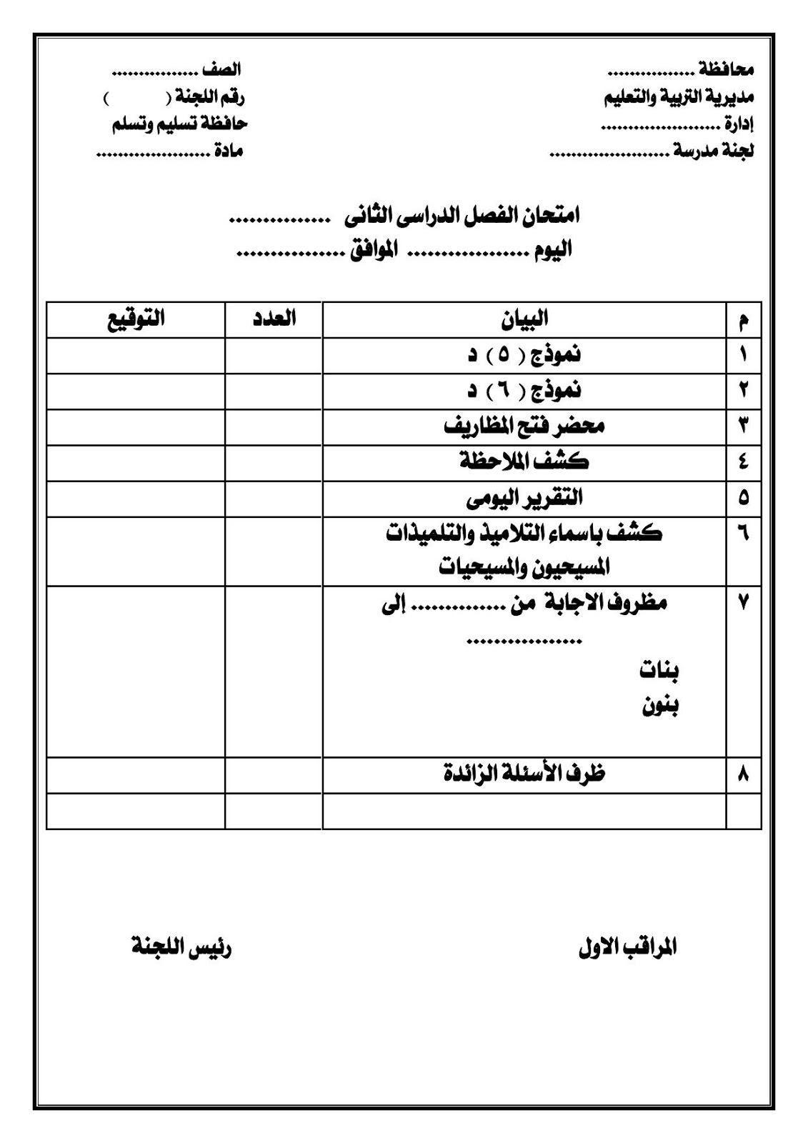 تسليم أوراق الإجابة فى الوقت المخصص والتوقيع على التكت وعلى صحة رقم الجلوس. مواضيع هامة في رابط واحد كل مايتعلق بتنفيذ. الاجابة من التلاميذ الا فى نهاية الوقت المخصص للاجابة وترتب وتسلم الى مراقب الدور.
