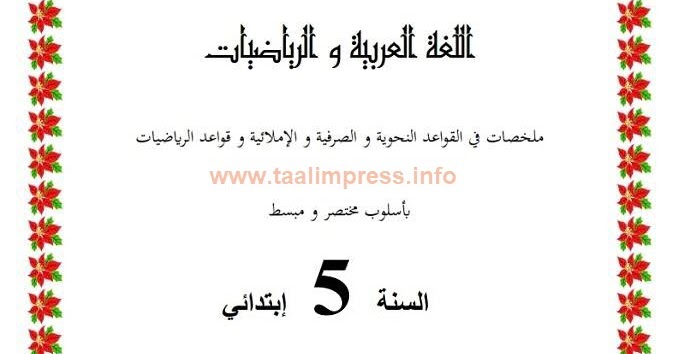 ملخصات في النحو و الصرف و الإملاء و قواعد الرياضيات للمستوى الخامس ابتدائي
